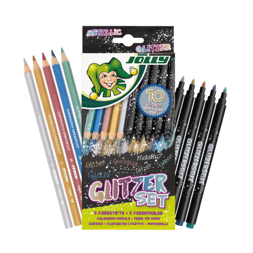 set sadrži: 5 Supersticks metalik drvenih bojica, 5 Superstars metalik flomastera;
