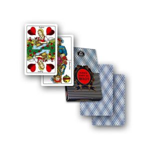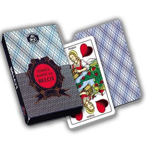 • za belot (bela), dimenzije: 63×99 mm, 32 karte, standardne