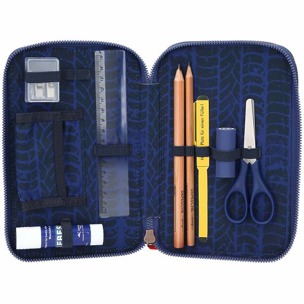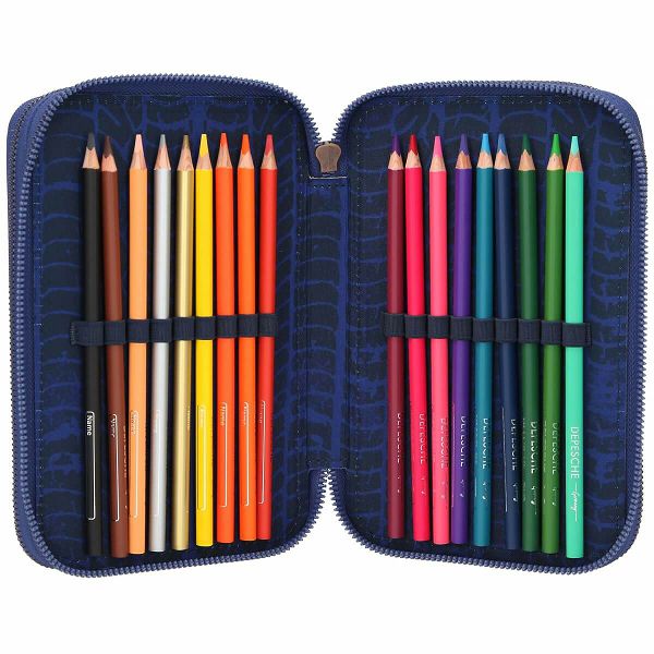 U pernici se nalazi: gumica, ljepilo stick, metalno dvostruko šiljilo, škare, grafitne olovke (2 1/2 HB), ravnalo (15 cm), 18 drvenih bojica, 18 flomastera
