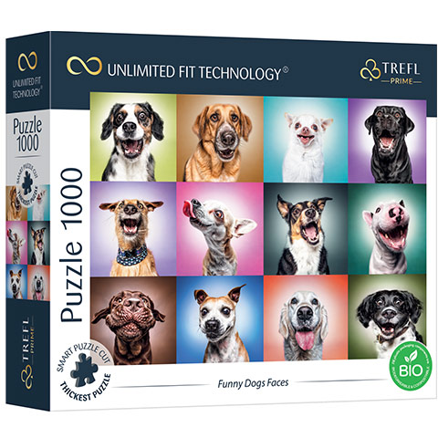 Trefl zagonetke pokazuju mnogo mjesta, ali ponekad je potrebno malo humora i zabave, pa je upravo zato konačna slika koja prikazuje 12 pasa, svi fotografirani u smiješnim pozicijama. Svako štene je dobilo drugu boju pozadine kako bi slika bila još šarenija i živopisnija. Veličina gotove slike je 68×48 cm, a sastoji se od 1000 kom.