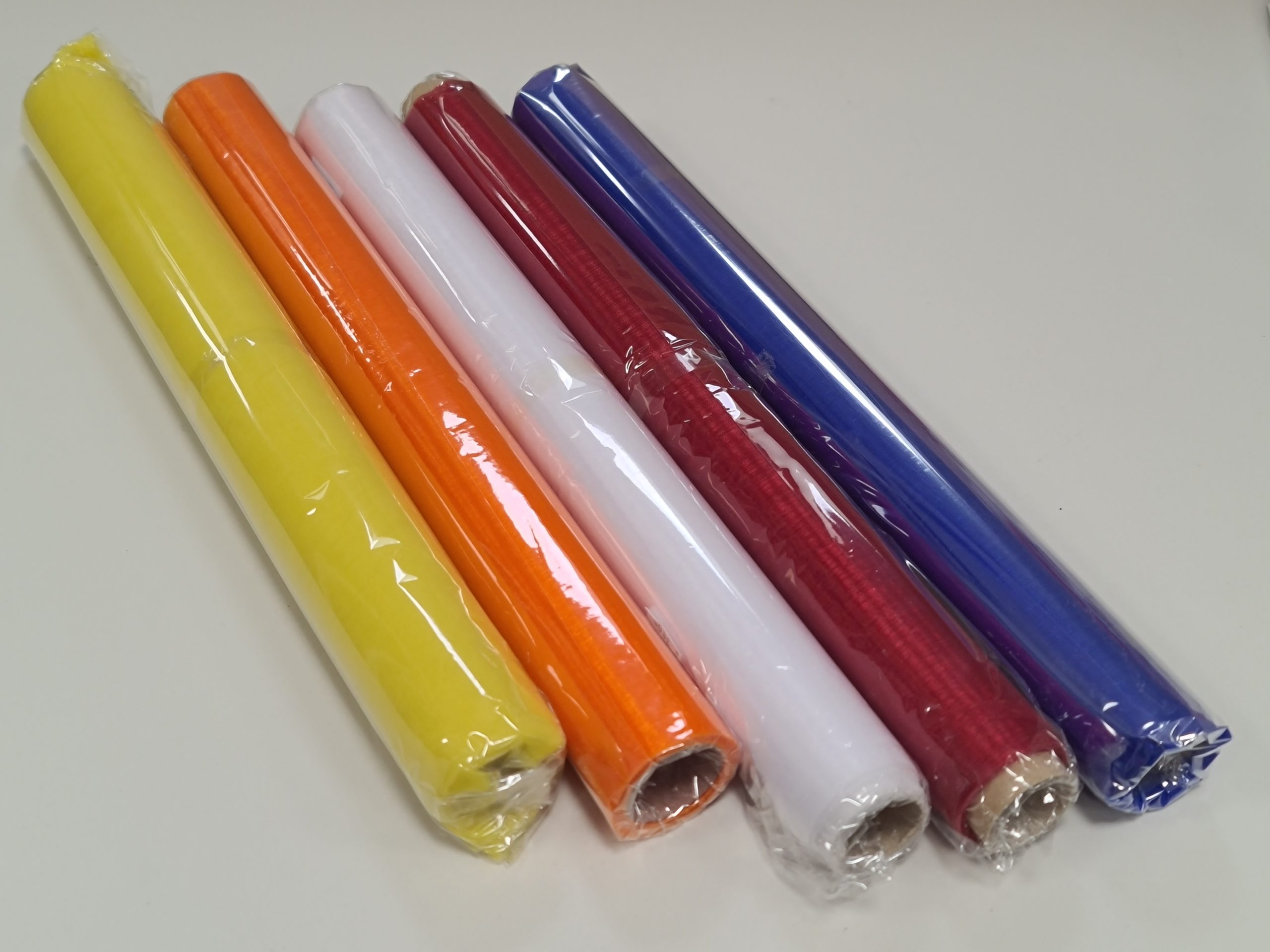 Dekorativna poluprozirna tekstilna staza u roli. Izrađena od organza materijala sa mrežnim uzorkom, ali bez satenskih rubova na krajevima.