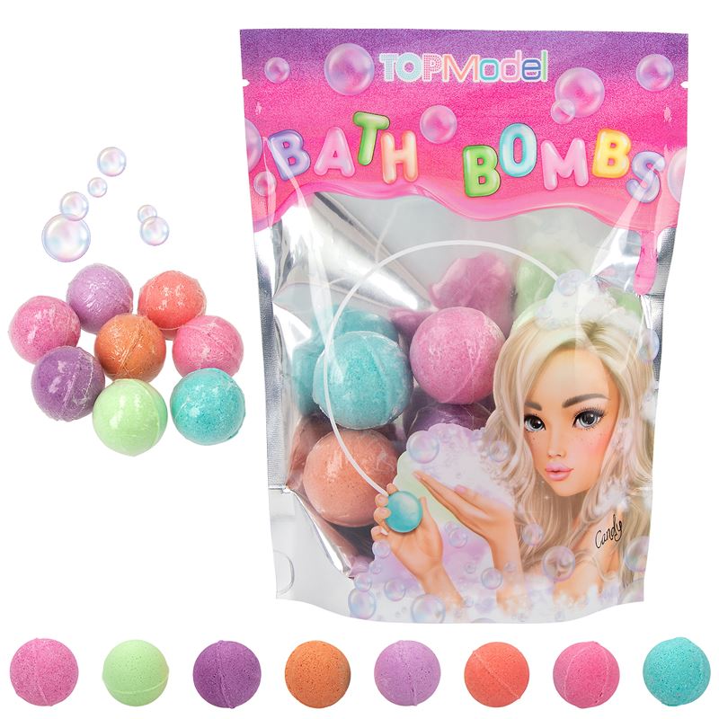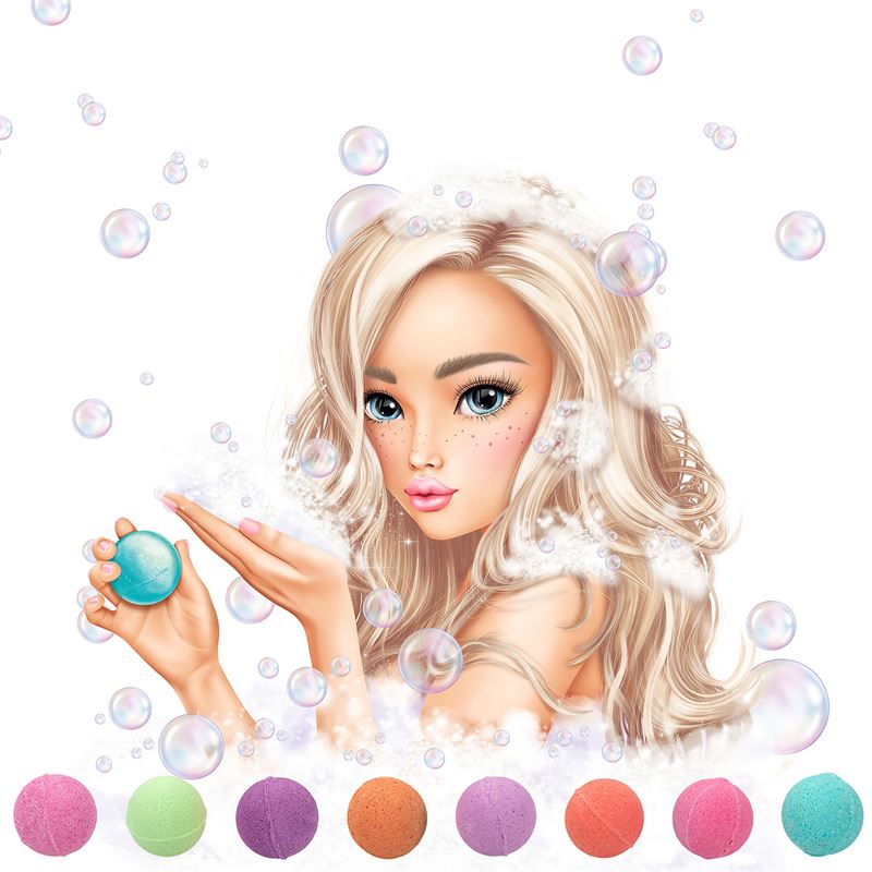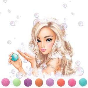 8 šarenih kuglica za kupanje otapa se u vodi i odišu izvrsnim mirisom: ružičaste kuglice mirišu na jagode, ljubičaste kuglice na ananas, plave i zelene kuglice mirišu na žvakaću gumu, a kuglice boje breskve poput vanilije
