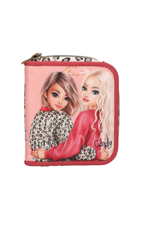 Novčanik TOPModel ima elegantan dvostruki motiv modela s detaljima lava na ružičastoj prednjoj strani i patentni zatvarač u potpunosti u dizajnu lava. Ostatak novčanika je jednobojan u bobičasto crvenoj boji. Unutra se nalazi nekoliko utora za kartice, pretinac za novčanice, pretinac s prozirnim prozorčićem i dvodijelni pretinac za kovanice s patentnim zatvaračem. Glavni materijal: 100% poliester