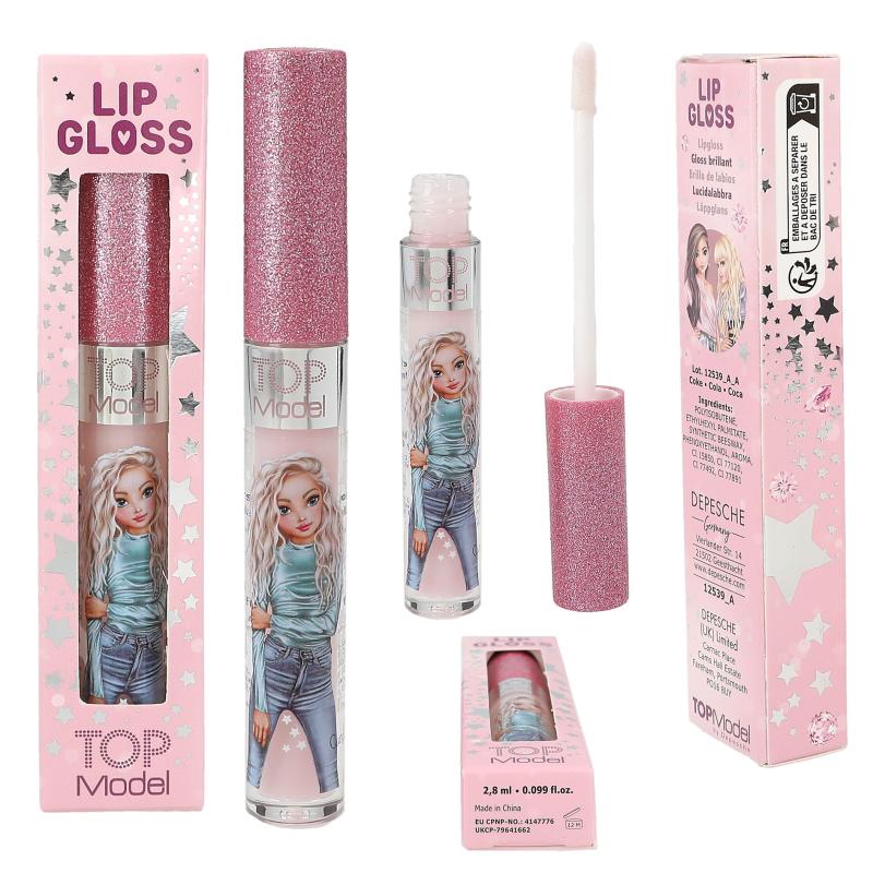 Glitter-genije! Sjajilo za usne TOP Model s prekrasnim svjetlucavim čepom dolazi u dvije boje i mirisa: ružičasto sjajilo s mirisom jagode i čepom bobičastog voća te rozo sjajilo s mirisom cole i srebrnim čepom. Sadržaj 2,8 ml po bočici